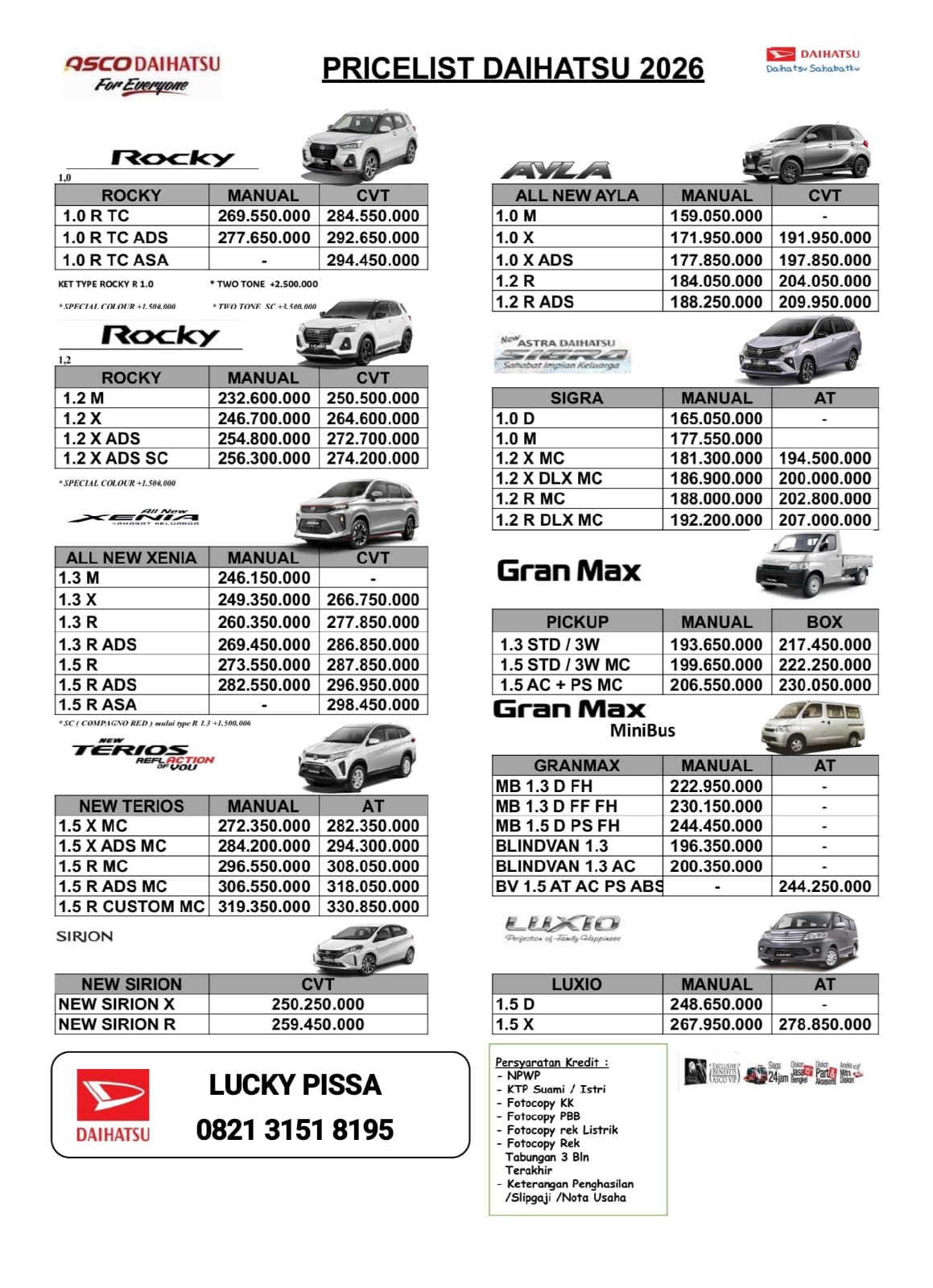 - Pastikan Pembelian Daihatsu Dipercayakan Kepada ASCO Daihatsu Mastrip Surabaya Dengan Wiraniaga / Salesman “Lucky Pissa”